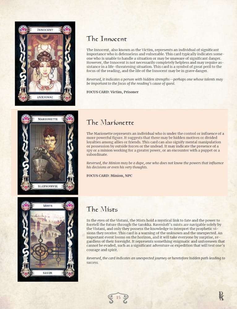 A complete reference with card meanings, reading layouts, and guidance for running tarokka readings at the table. - Free Digital Ravenloft Cards